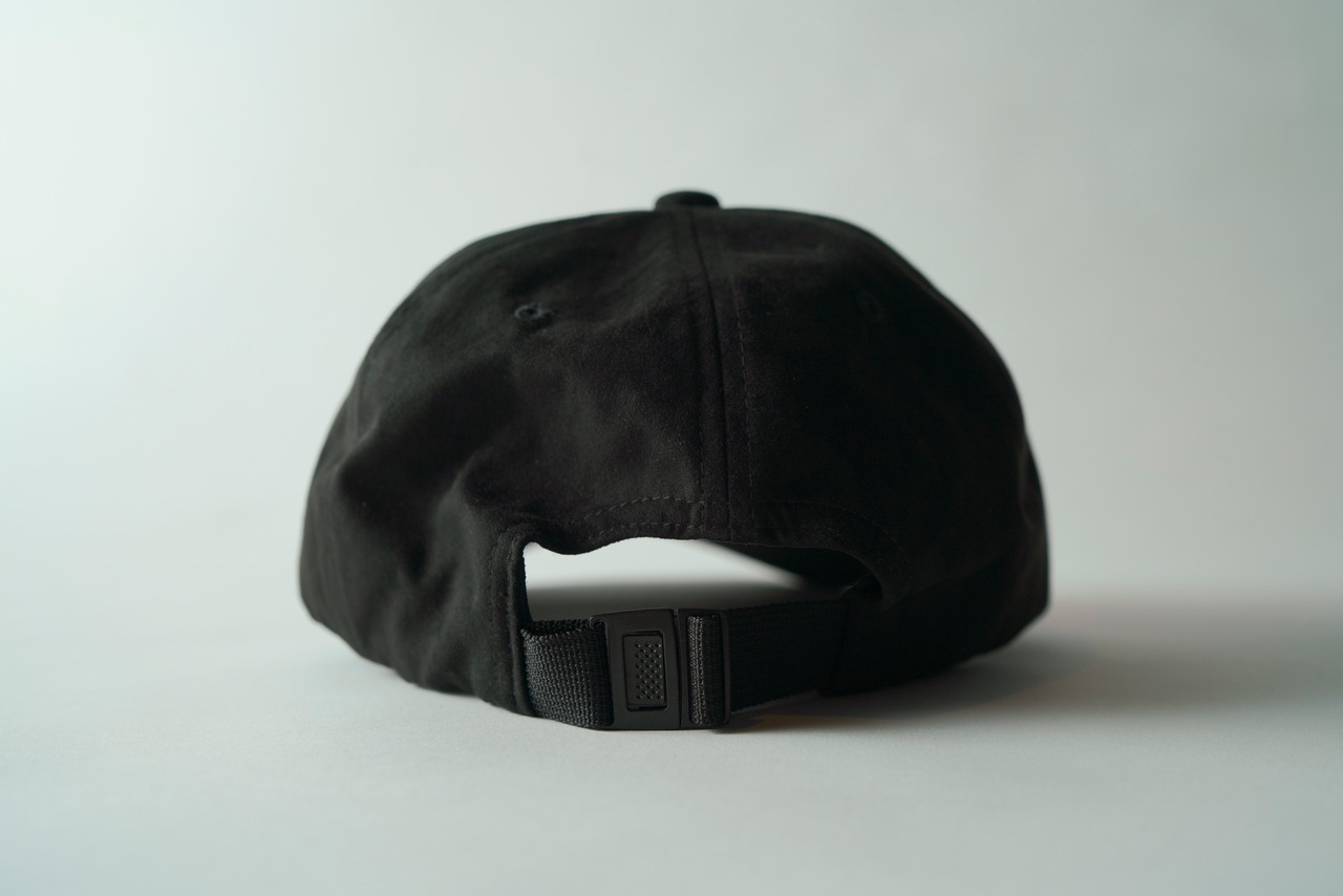スウェードの質感のコットンキャップ、ブラックです。